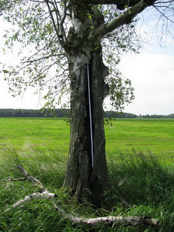 Foto rechts: Einen riesigen Schiefen Schillerporling erntete Pilzfreund Tobias in der Hesedorfer Feldmark bei Bremervörde. Zwar ist der Pilz hier nicht in Einzelheiten erkennbar. Doch der angelegte Zollstock zeigt das Ausmaß seiner imponierenden Wuchshöhe. Das Prachttteil wog 7,5 Kilogramm! Viel Schrot für viel Tee vom Chaga! (Foto © Tobias).