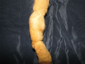 2 Fotos: Links Zimtfarbener Weichporling mit Alaun, rechts der gleiche mit Kammgarn und Alaun.