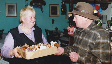 Foto: Kurz danach überreicht er der Wirtin vom "Fuchsbau", seinem Stammlokal, den Karton. Es ist Freitagabend. Wird das am Wochenende eine Pilzsuppe für die Gäste geben!