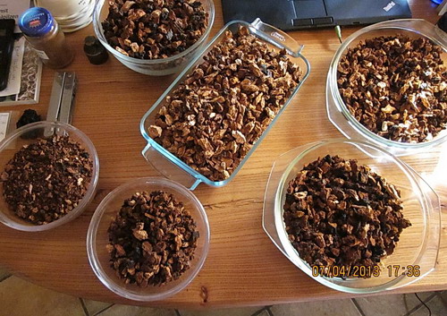 Foto: Eine stattliche Ausbeute an gewonnenem und bereits getrocknetem Schrot vom Schiefen Schillerporling. Johannes wendet es auf vielfältige Art an, hält diverse Teesorten für variierenden Geschmack bereit - und hat beste Heilerfahrungen mit dem Chaga gemacht (2 Fotos © Johannes P.).
