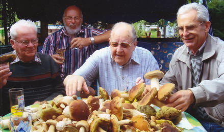 Foto: Rentnertreff mit Pilzen. Das alljährliche Steinpilzessen mit seinen ehemaligen Kollegen ist für Peter Rohland schon eine kleine Institution geworden. Dezent hält sich der Pilzsammler im Hintergrund. Die Mitteldeutsche Zeitung feierte Rohland als "Schwammerl-König von Blankenheim".