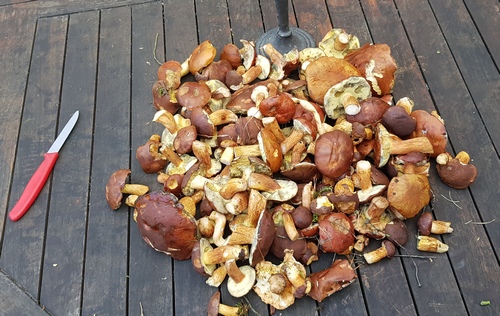 Es war ein wunderschöner Tag. Die Bilder zeigen den Fund von 2 Sammlerinnen. Einen Teil der Pilze haben wir an liebe Freunde verschenkt.