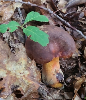 Foto: Es hat doch noch geklappt mit einem guten Fund für Tobias und seine Mitsammler. Und Maronenröhrlinge können sehr lecker sein, siehe nur Petra vom Pilzticker Bayern, die haltlos für ihre Maronencremesuppe schwärmt (Tageseintrag vom 15. Oktober 2025). (Foto © Tobias)