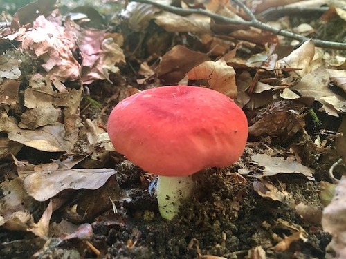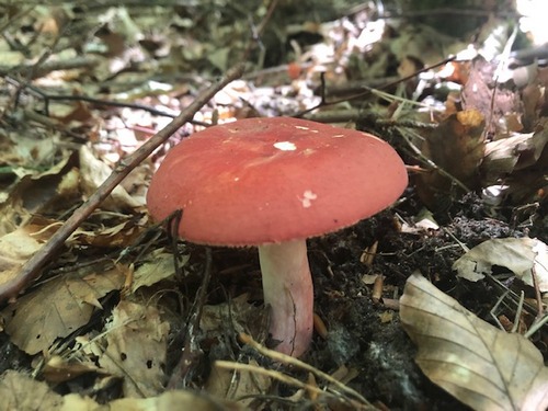 Zu den Täublingen gesellten sich dann noch ein wunderschöner Frauentäubling, ein Fleischroter Speisetäubling und ein paar Grüngefelderte Täublinge, sowie einige Mandeltäublinge, die zwar superlecker riechen, wenn man ihre Lamellen in Ruhe lässt, aber schon aufgrund ihrer leichten Giftigkeit und ihres ekelhaften Geschmacks absolut nichts für die Panne sind und deshalb auch stehen bleiben durften.