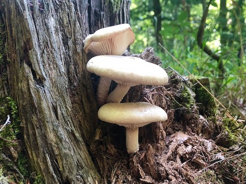 Foto: Von den Schuppigen Sägeblättlingen gab es so viele, dass Thomas drei der seltenen Holz bewohnenden Pilze mitnahm. Sie wachsen an Nadelholz, meist Totholz.
