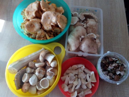 Perlpilze, Parasole und einige wenige Hexen nahmen wir natürlich auch gerne mit. Verschiedene Täublingsarten wachsen immer noch im Überfluss.