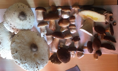 Foto: Das Ergebnis eines Spazierganges mit Hund im Remstal waren diese herrlichen Steinpilze und Parasole für Daniel.