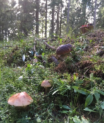 Ich fand schöne Steinpilze, Maronen, Pfifferlinge, zwei Gelbstielige Trompetenpfifferlinge, ein Birkenpilz sowie drei Parasolpilze, die heute noch als Schnitzel in der Pfanne landen.