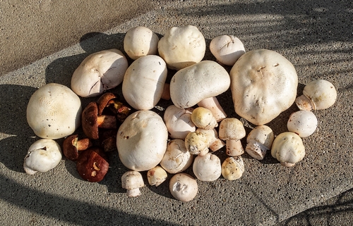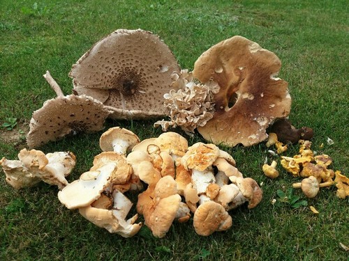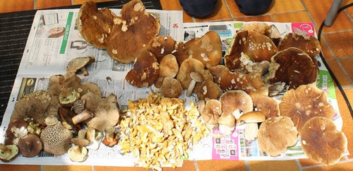 Außer Steinpilzen, Pfifferlingen und Maronen gab es auch sehr viele Perlpilze und nach wie vor Täublingsüberschuss.