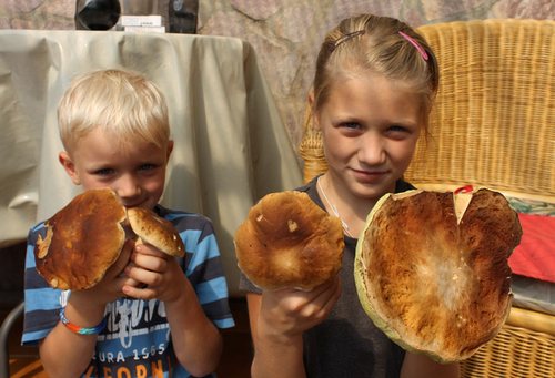 Foto: Natalias Kinder, Nikolai und Anastasia, zeigen die schönsten Steinpilze, die sie an einer neu entdeckten Stelle im Nördlichen Schwarzwald gefunden haben.
