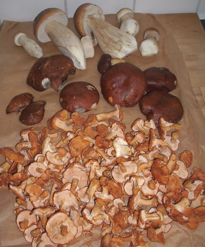 Die Pilze sind schon zum Trocknen ausgelegt. Und der ganze Wald steht noch voll mit diesem leckeren Pilz! Da werde ich wohl bald wieder raus müssen.