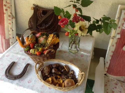 Foto: Das Hufeisen als Glücksbringer funktionierte nur teilweise. Die erhofften Steinpilze waren schon uralt und nicht mehr zu gebrauchen. Doch Walter freute sich auch über junge Maronen und Pfifferlinge. In ihrem Körbchen sind sie der Mittelpunkt eines schönen Herbststilllebens. (Foto © Walter)