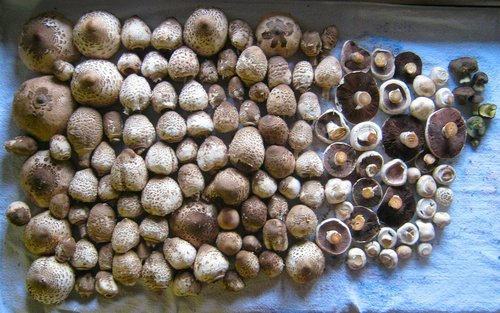 vergangenen Freitag war ich während einer kurzen Mittagspause im Wald völlig unverhofft auf eine Gesellschaft von ca. 60 Parasole in allen Größen - von kleinen Schlegeln bis zu überständigen Exemplaren - gestoßen, siehe das Foto rechts. Dies freute vor allem meine Nachbarn.