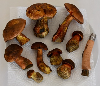 ich fand heute Sommersteinpilze im Mischwald in guter Qualität. Es standen aber auch bereits viele überständige Riesen im Wald, die nun die ehrenvolle Aufgabe haben, ihre Sporen zu verteilen.