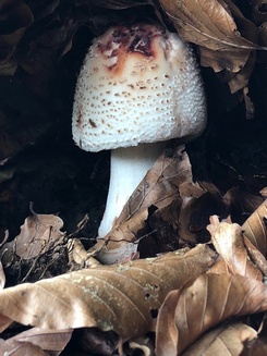 2 Fotos: Ein schöner junger Steinpilz blieb diesmal die Ausnahme für Oliver. Ein prächtiger Perlpilz wie auf dem rechten Bild schmeckt allerdings auch sehr gut.