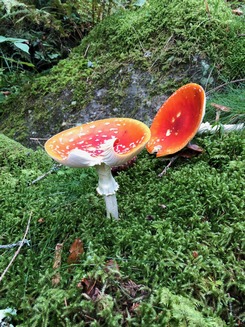 Im Wald waren es Glucken, Flockis, Kupferrote Gelbfüße, ein Schwarzblauender Röhrling und ein Steinpilz. Den ersten Fliegenpilz konnten wir auch im Bilde festhalten.