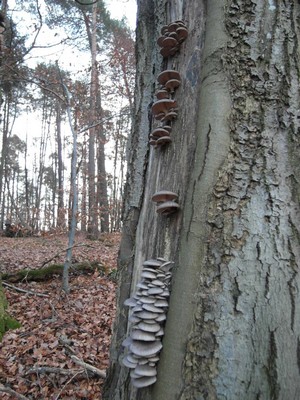 Einige der Buchenstämme trugen auch vereinzelte Austernseitlinge, die z.T. aber bereits alt waren.