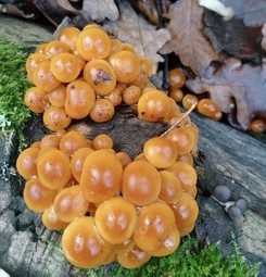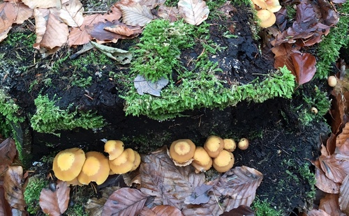 Foto: Auch diese Stockschwämmchen hätte Andreas durchaus mitnehmen können. Da er sich mit der Bestimmung aber nicht ganz sicher war, ließ er sie vorsorglich unangetastet im Wald zurück. Das ist richtig so!