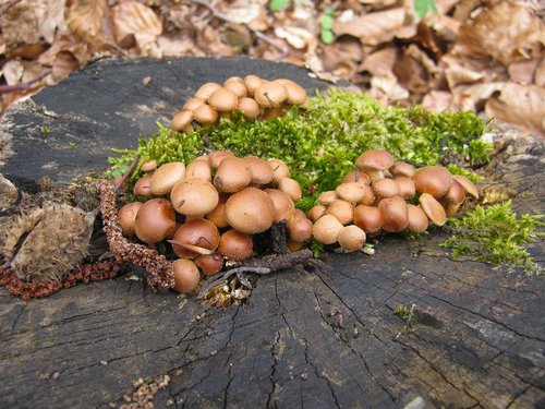 Foto: Mit diesen jungen Stockschwämmchen sind auch die ersten guten Lamellenpilze der neuen Saison da. Sie zählen zu den Frühaufstehern im Pilzreich unserer Breiten.