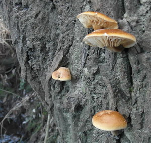 Dabei noch einige schöne Austernseitlinge, die ebenfalls an einem alten Weidenstumpf zusammen mit vielen Rüblingen wuchsen.