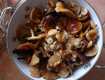 noch eine Kostprobe an Winterpilzen, leckeren Samtfußrüblingen,