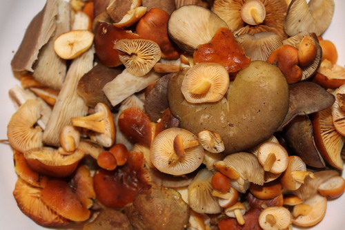 Foto: Eine schöne Mischung aus Winterpilzen - Samtfußrüblingen und Austernseitlingen - hat Hans gefunden. Und das bei seiner ersten Suche nach Winterpilzen überhaupt.