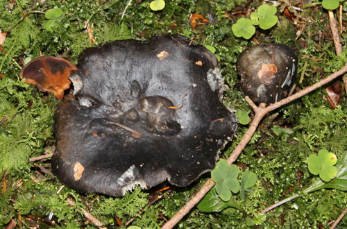 Zwei Stunden lang konnte ich dem höhnischen Gelächter über mir trotzen, und dann, plötzlich, kurz vor dem endgültigen Aufgeben, waren sie da: zwei schwärzliche Pilze, im Moos abgeduckt, an einem Nordhang mit Weißtannenbesatz und auch einigen Buchen. Ein Blick von seitwärts - und schon hatte ich sie enttarnt: Märzellerlinge!