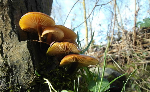 nochmal ein gutes Neues Jahr auf diesem Wege. Meine zwei Fotos zeigen die kleine, aber feine Ausbeute des heutigen Pilzganges an dem Dir schon bekannten Flüsschen. Viele schöne Samtfussrüblinge und an einem abgebrochenen Weidenast dann einige hübsche, wenn auch noch kleine Austernseitlinge.