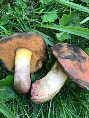Foto: Typisch für Netzstielige Hexenröhrlinge ist ihr Standort an Waldrändern, Böschungen und in an an Parks. Man findet sie oft im Siedlungsbereich. Die Glattstieligen Hexen auf dem zweiten Foto schmecken besser als die Netzstieligen, sie sind geschmacklich den Flockenstieligen Hexenröhrlingen sehr ähnlich.