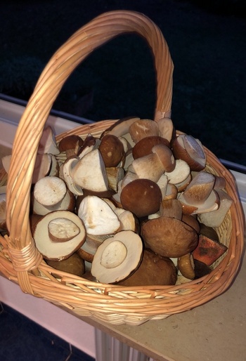 ich habe heute meinen Feierabendspaziergang bei Mainhardt im Landkreis Schwäbisch Hall mit wunderschönen Steinpilzen und tollen Rotkappen abgerundet. Klasse, was zurzeit im Wald passiert! Ich möchte am liebsten gar nicht mehr raus! Mir macht es Riesenspaß, meinen Freunden das Abendessen zu verfeinern.