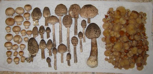 Es gab unzählige Parasole, Nelkenschwindlinge und Wiesenchampignons, von denen wir nur die schönsten Exemplare mitnahmen. Auch der seltene Hasenstäubling war vertreten.