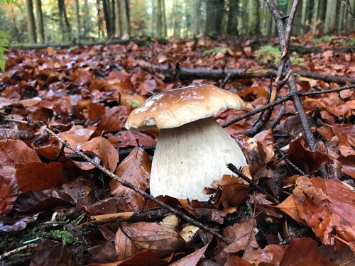 aufgrund der idealen Bedingungen für die Herbstpilze habe ich gestern spontan nach der Arbeit im Wald bei Stuttgart-Degerloch eine kleine Runde gedreht. Obwohl in diesem Buchen- und Eichenwald vor zwei Jahren ordentlich gefällt wurde und leider einige Bäume auch der Trockenheit zum Opfer gefallen sind, wurde ich nicht enttäuscht. In der einsetzenden Dämmerung erwarteten mich mehrere kleine Steinpilzfamilien im besten Alter und bei guter Qualität.