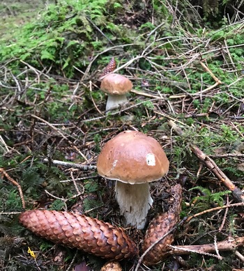 Foto: Sven hat noch einmal einen tollen Fund gemacht und in seinen Maulbronner Wäldern die letzten Steinpilze vor dem Frosttod gerettet. Einige kräftige Hexenröhrlinge kamen noch hinzu. (Foto © Sven)