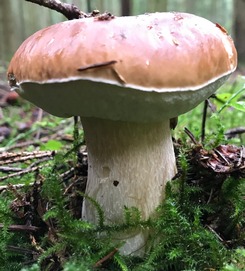 Foto: Ein Wächtersteinpilz. Er hat Übersicht und Überblick über die große Waldwiese und den Waldrand.