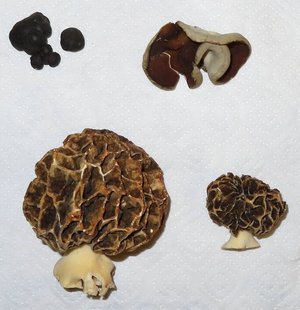 2 Fotos: Die Speisemorchel (links) ist für den Teller, die Kohlenkugelpilzchen (rechts) sollen helfen, Michaels Räucherofen zu befeuern.