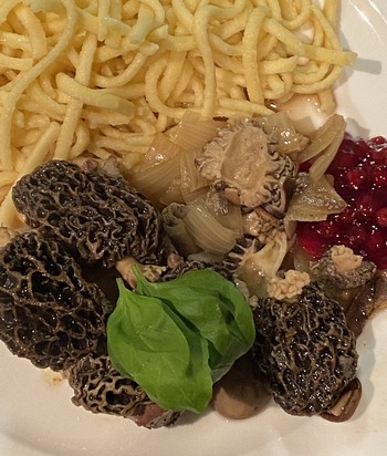 gestern bin ich nach der Arbeit wieder kurz in die Morcheln gegangen. Und wieder konnte ich schöne Speisemorcheln entdecken. Es gab sie zum Abendessen mit Lamm und Nudeln (Foto rechts). Es hat einfach köstlich geschmeckt und ich hoffe, es geht so weiter mit dem Morchelwachstum.