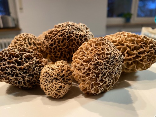 ich kriege mich gerade gar nicht mehr ein vor Freude. Die ersten Speisemorcheln 2020 liegen auf dem Teller! Und ein paar Morchelbecherlinge gab's noch dazu. Und natürlich gleich am Abend ein köstliches Morchel-Pasta-Gericht.
