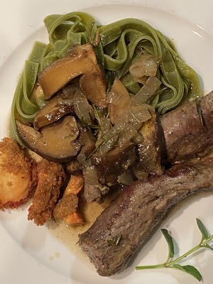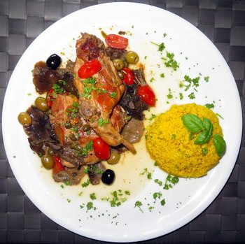 Ich bin zwar kein Sarde, geschmeckt hat es aber trotzdem. Bei dem leckeren Mahl handelt es sich um Sardisches Kaninchen mit Hallimasch an Safranrisotto. Das Original verlangt zwar keine Hallimasche, aber Rezepte sind ja variabel und alles harmoniert ausgezeichnet.