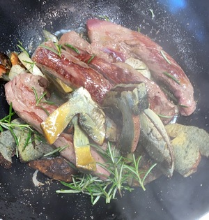 Mein Hauptgericht mit den leckeren frischen Waldpilzen waren Lammfilets mit den Flockis (1. Foto rechts). Beide habe ich zusammen gebraten (2. Foto rechts).