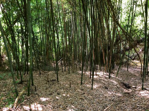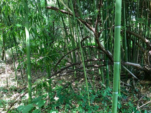 Foto: Ein Bambusdickicht im Forst von Hochstetten - ob das den zuständigen Förster wohl freut? Michael, Suri und Yoga war's recht. Sie ernteten umgehend junge Triebe. Suri mit ihren thailändischen Wurzeln weiß schließlich, wie man in der Küche damit umzugehen hat.