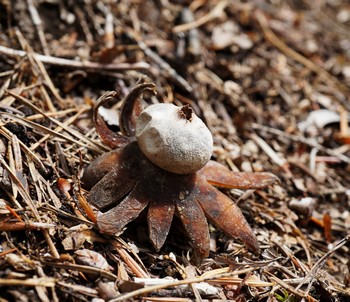 Anm.: Der Wetterstern kann seine sternförmig aufgerissene Außenhülle (Exoperidie) bei Trockenheit um die die Sporen bergende runde Innenkugel (Endoperidie) schließen, um sie vor Austrocknung zu schützen. Der Pilz reagiert damit auf Veränderungen der Luftfeuchtigkeit, woher er seinen Namen bezog.