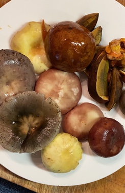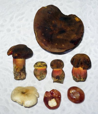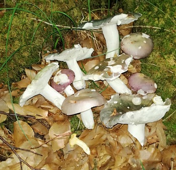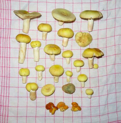 Rosatäublinge, einen Goldröhrling und eine Gruppe von Pfeffermilchlingen*.