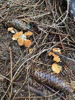 Zwar hat die Trockenheit dafür gesorgt, dass die Steinpilze nicht in den Massen der vergangenen zwei Jahre auftreten, aber an meinen Standorten sind zuverlässig doch sehr schöne Exemplare zu finden (z. B. 1. Foto rechts). Auch an Flockenstieligen Hexenröhrlingen und Pfifferlingen (2. Foto rechts) fehlt es nicht.