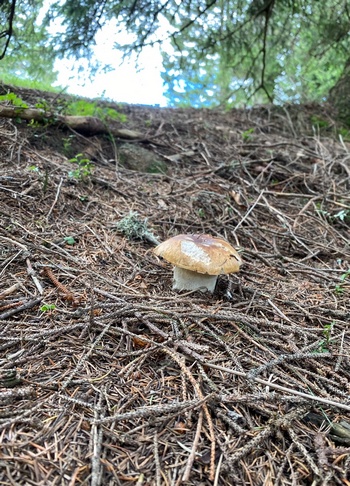 einfach einzigartig, was so ein bisschen Regen ausmacht. Gefunden haben wir Steinpilze (z. B. Foto rechts), Pfifferlinge, Semmelstoppelpilze und Kuhmäuler. Ich hoffe, uns steht jetzt im Hochschwarzwald eine Pilzexplosion bevor.