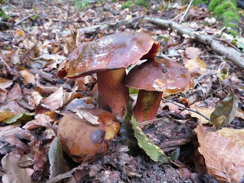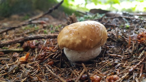Foto: Und noch einer. Wenn die Hüte glänzen, sieht man sie noch besser als bei Trockenheit. Allerdings eignen sich nasse Pilze nicht zum Dörren.