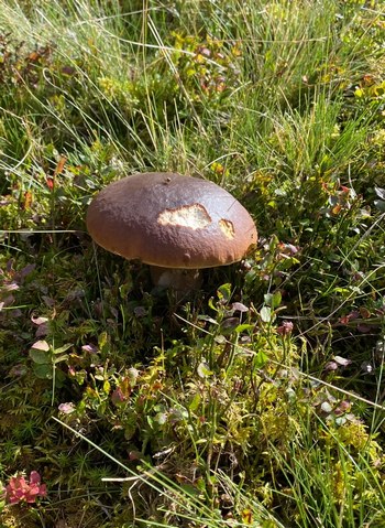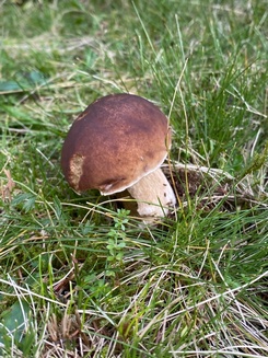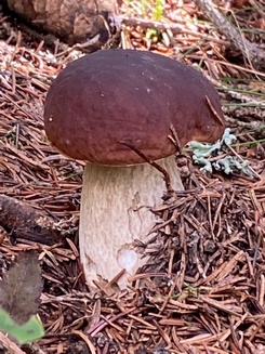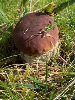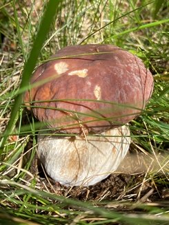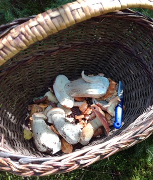 Drum herum war viel aufgewühlter Boden, ebenso an früheren Steinpilzplätzen. Ich vermute, dass es Wildschweine waren. Zum Glück konnte ich drei Exemplare noch vor ihnen retten. Der dickste im Korb (Foto rechts) war bereits umgekippt.
