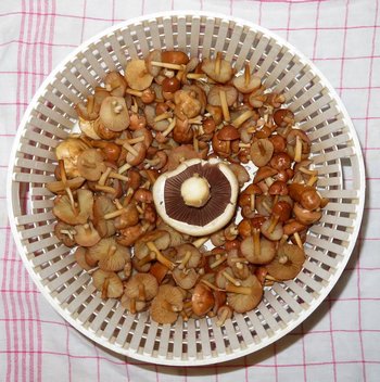 auch auf den umliegenden Wiesen im Raum Kronau tut sich nun was. Suri und ich sammelten einige schöne Nelkenschwindlinge und einen Wiesenchampignons (Foto rechts) ein.