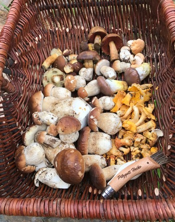 2 Fotos: Neben Steinpilzen fanden Heiko, Merle und Ronny auch schöne Pfifferlinge (Foto rechts).