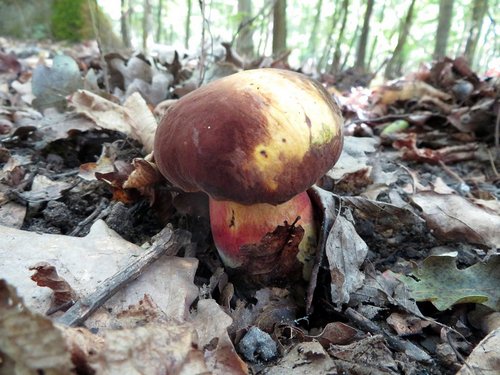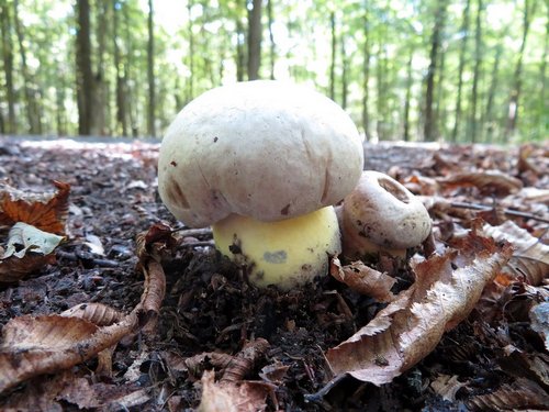 Foto: Die ungenießbaren Wurzelnden Bitterröhrlinge, die geschmacklich an den Gallenröhrling erinnern, imponieren Michael. Sie sind von sehr kräftiger Statur, stehen oft in wahren Horden da und man ertappt sich dann dabei, dass man sich wünscht, sie wären essbar.