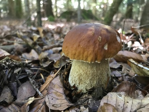 Foto: Er wurde schon länger sehnsüchtig von Michael erwartet, der Herrr Edulis. Damit sind bei Kronau nun auch die Fichtensteinpilze da.
